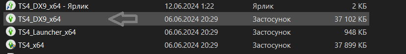По-друге, відкриваємо папку гри The Sims 4, шукаємо там папку GAME, натискаємо, переходимо у папку BIN. У папці BIN Ви повинні знайти застосунок з назвою TS4_DX9_x64 (фото додаю). Тепер гра через цей лаунчер буде запускатися на базі DX9. І в середині самої гри, внизу, де пишеться актуальна версія гри, Ви побачите, що замість 11, буде вказана 9. Для зручності зробіть ярлик на робочий стіл, щоб кожен раз не витрачати час на пошуки.