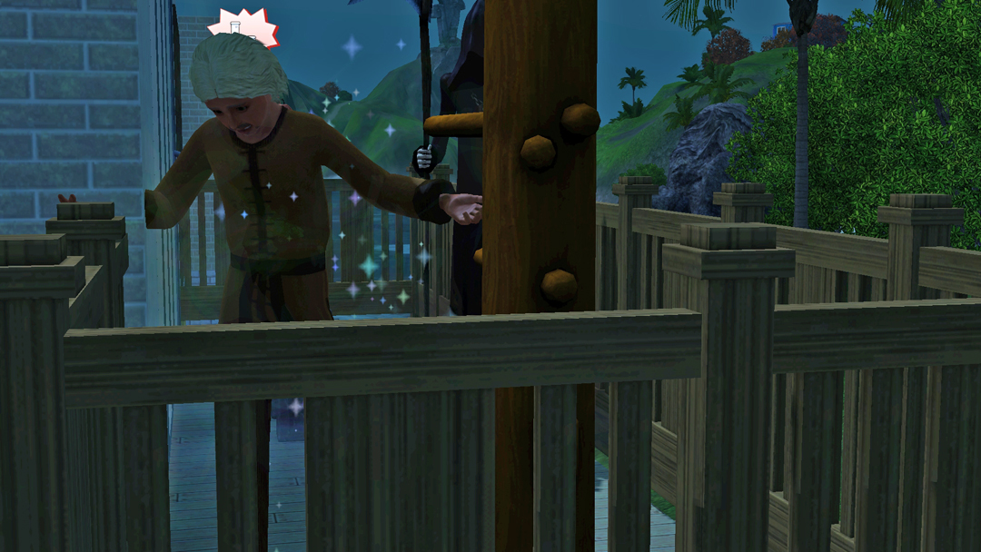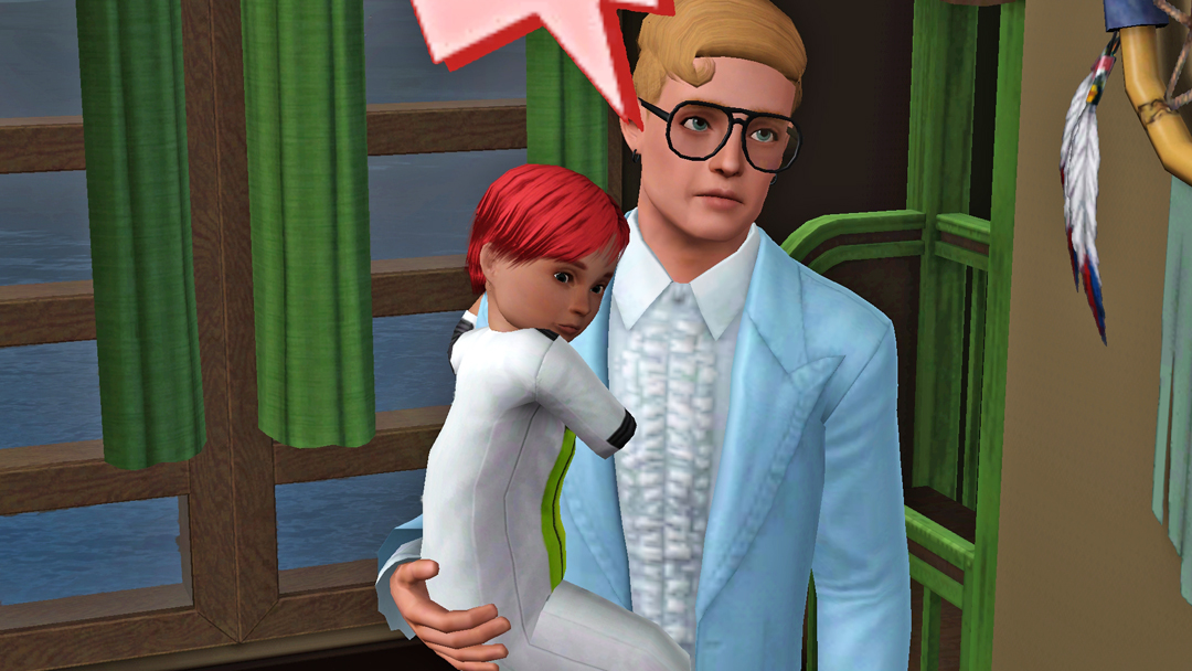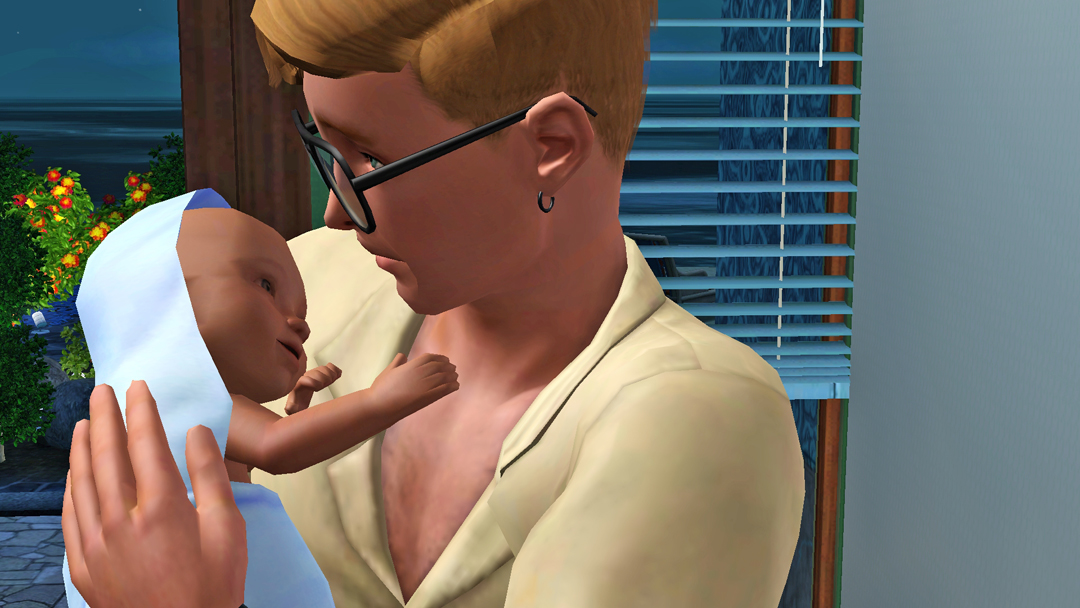 А от Нео, вже зовсім вигорів. Стоїть з малим, капризним Есфіром, який ніяк не вкладеться спати і прийшлось пів ночі носити його на руках. Пригортаючи сина до себе, Нео знову ловить себе на думці, що сердиться на Есфіра та подумки на нього кричить, "О святий сімс! Та коли ти вже заснеш?!"))