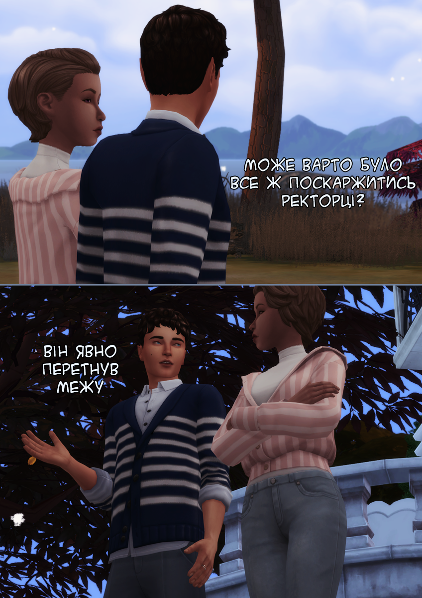 Хочу трохи додати від себе. Ситуація Д'юсти з її одногрупником - приклад нездорової конкуренції, опонент знецінює її навички і порушує особисті кордони у сварці. Його поведінка відображення моєї, коли я вчилася в ліцеї. Тому що будь-який персонаж у цій історії - часточка мене у той чи інший період часу. Навіть якщо я цього не планувала~