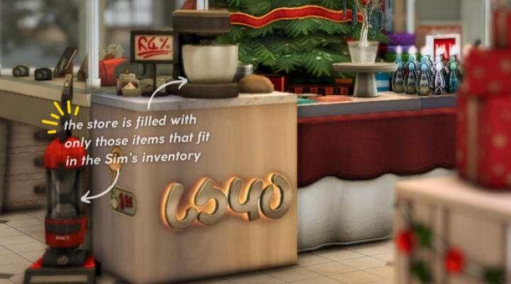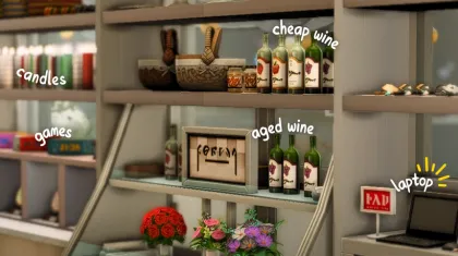 - в магазині розміщені тільки ті товари, що можуть лежати в інвентарі сіма (купив - подарував)